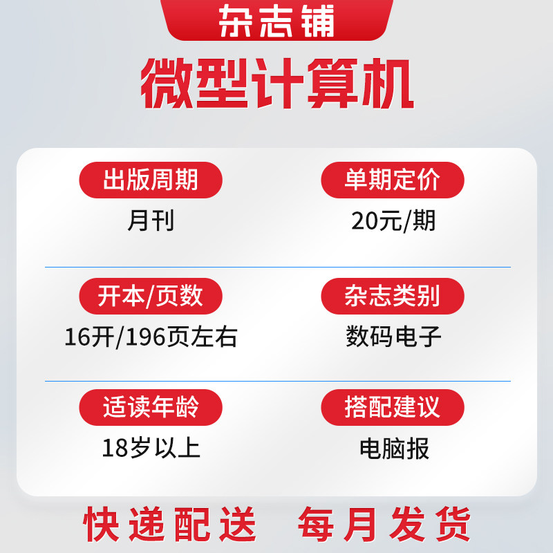 2026年1月起订 1年共12期 杂志铺全年订阅 通讯IT电脑硬件技术科技资讯 微型计算机杂志 数码 互联网科技期刊杂志 杂志铺预订