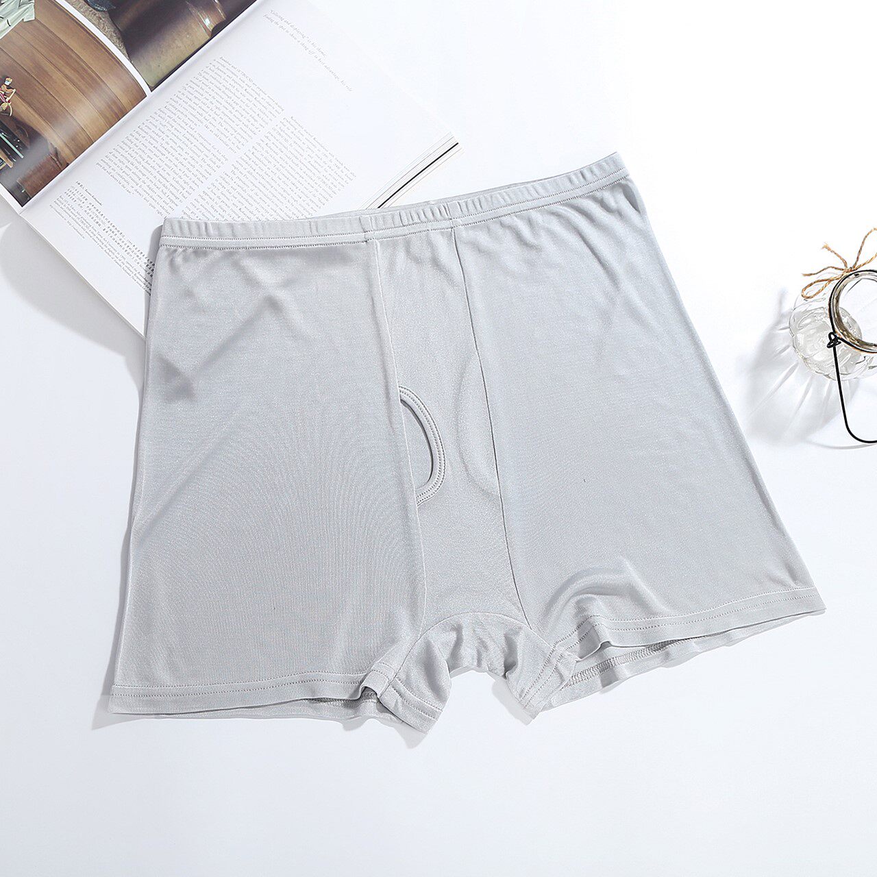 透气舒适短裤 桑蚕丝针织真丝新款 中腰高腰平角裤 内裤 前开洞男士