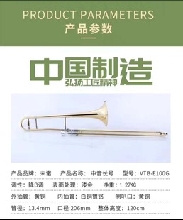 降B调铜管专业教会乐队VTB 长号拉管乐器 E100长号乐器 中音 未诺