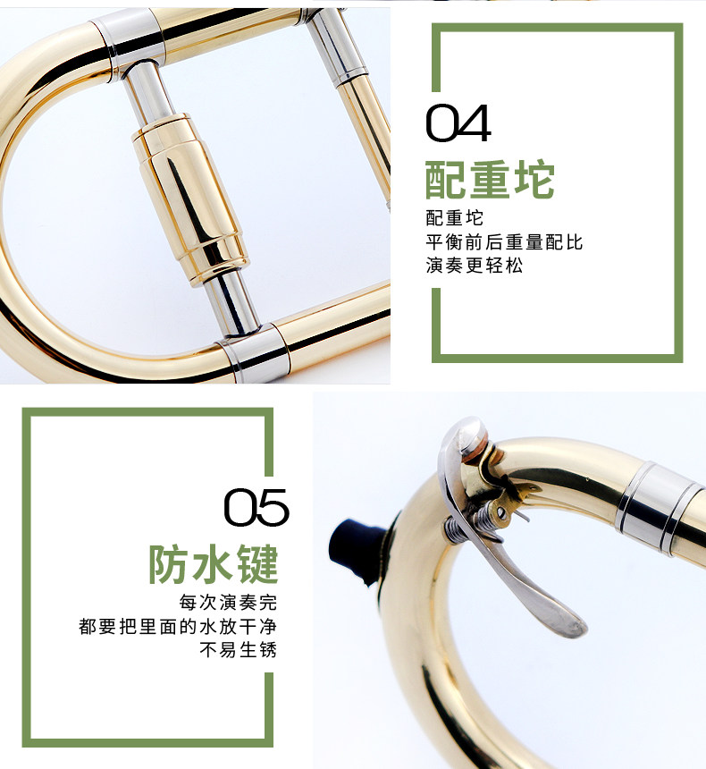 未诺新款 演奏漆金次中音变降b调f调长号拉管初学专业乐队铜管乐器