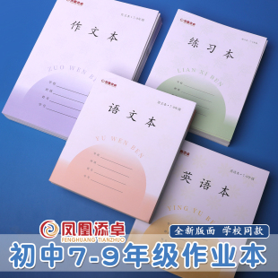 练习作文本数学本中学生用标准作业本子加厚30页传媒同款 凤凰初中生7 9年级作业本江苏省统一练习簿语文英语