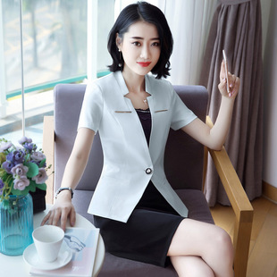 套裙韩范西装 女装 套装 酒店美容师工作服女短袖 夏装 夏季 白色职业装