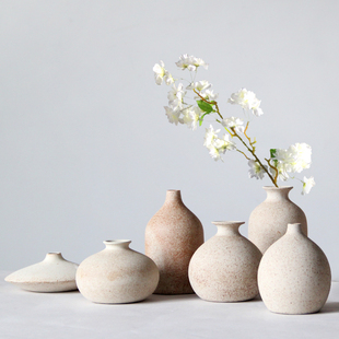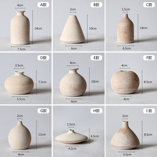 迷你陶瓷花瓶日式 铜钱草家居摆件 陶瓷花器茶桌花瓶粗陶禅意中式