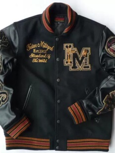 摩托机车毛呢头层牛皮衣真皮袖 174加肥加大码 棒球服 胸102 冬男装
