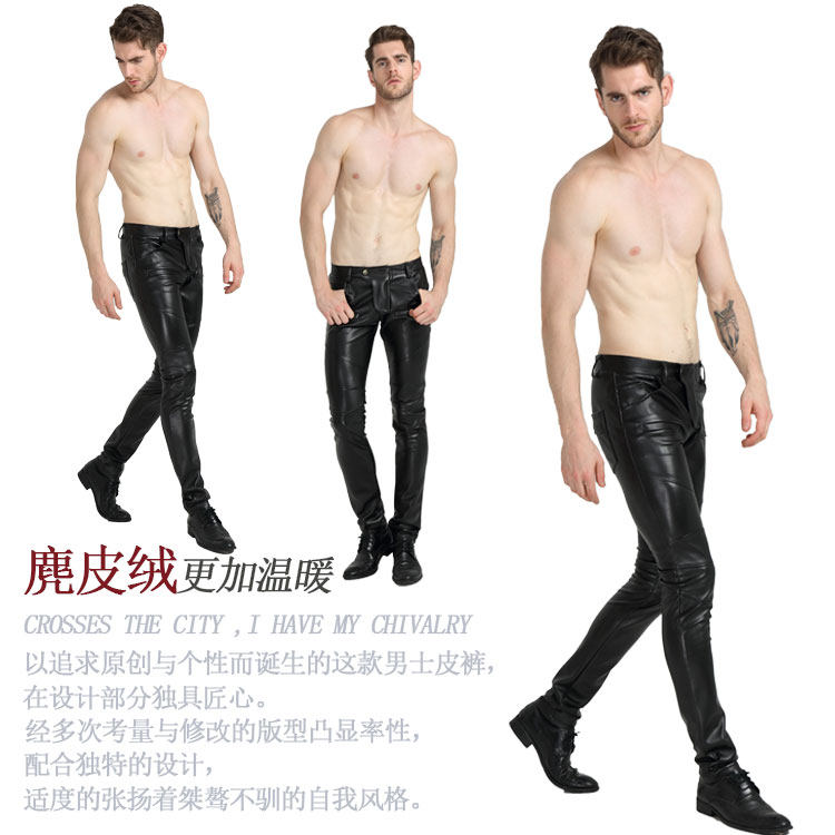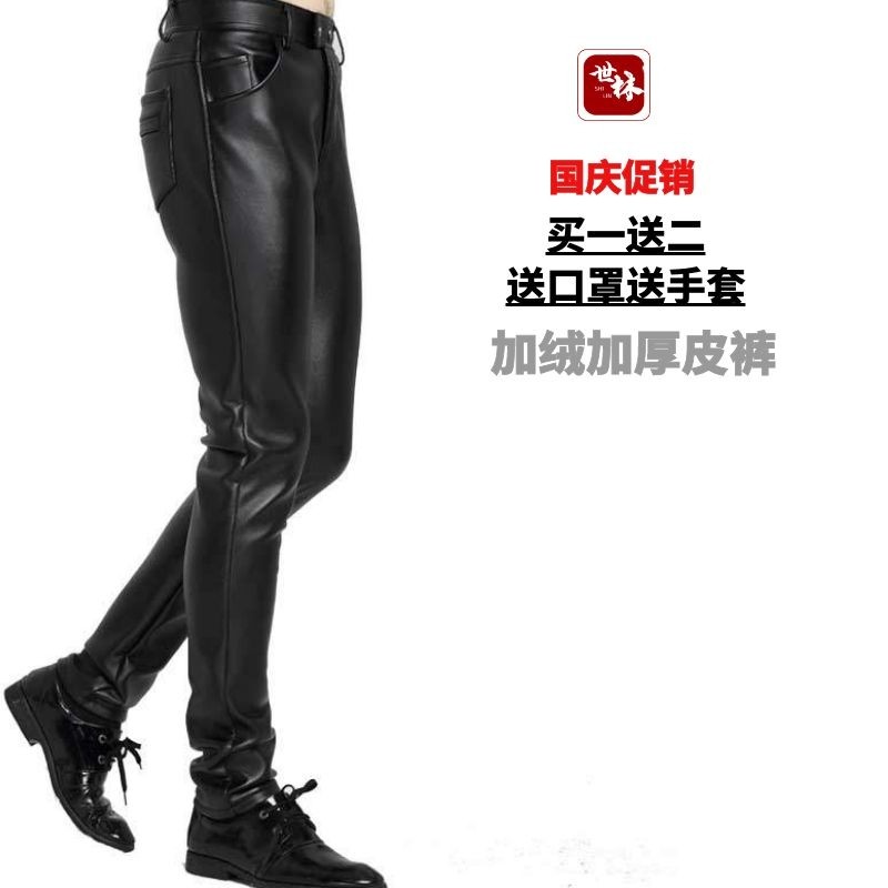 皮裤 秋冬皮裤 男加绒修身 小脚摩托车机车大码 子干活穿 韩版 世林男士