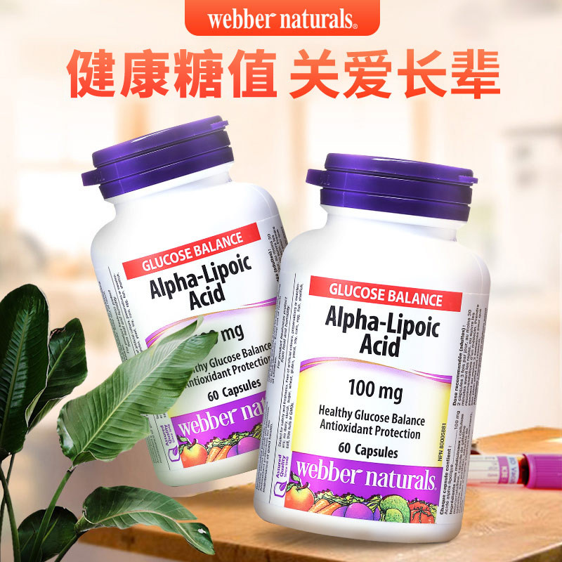 Webber 2瓶 Naturals加拿大进口伟博α硫辛酸胶囊60粒