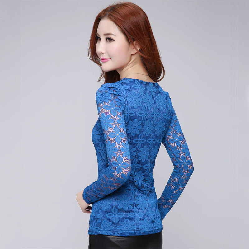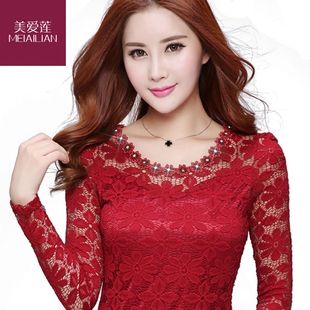 春秋装 蕾丝打底衫 韩版 t恤小衫 女士钉珠钻领上衣 长袖 新款