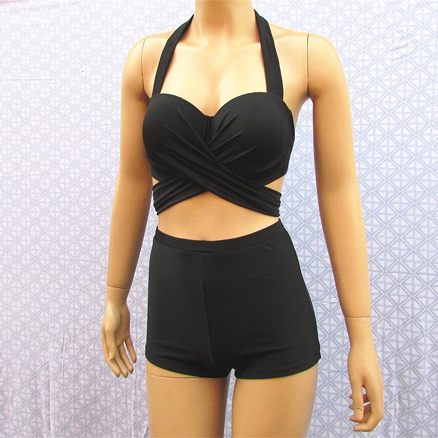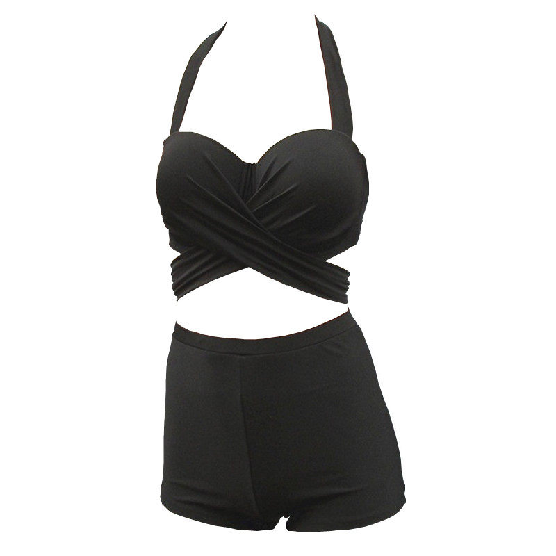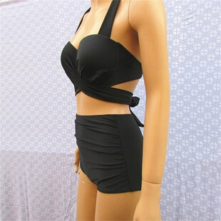 E罩杯大胸分体泳衣女高腰复古比基尼钢托聚拢平角大码 欧美泡温泉