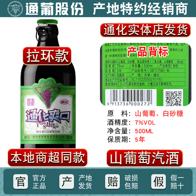 通葡股份 500ml 小爽口甜酒微气泡酒 7%vol 通化爽口山葡萄汽酒