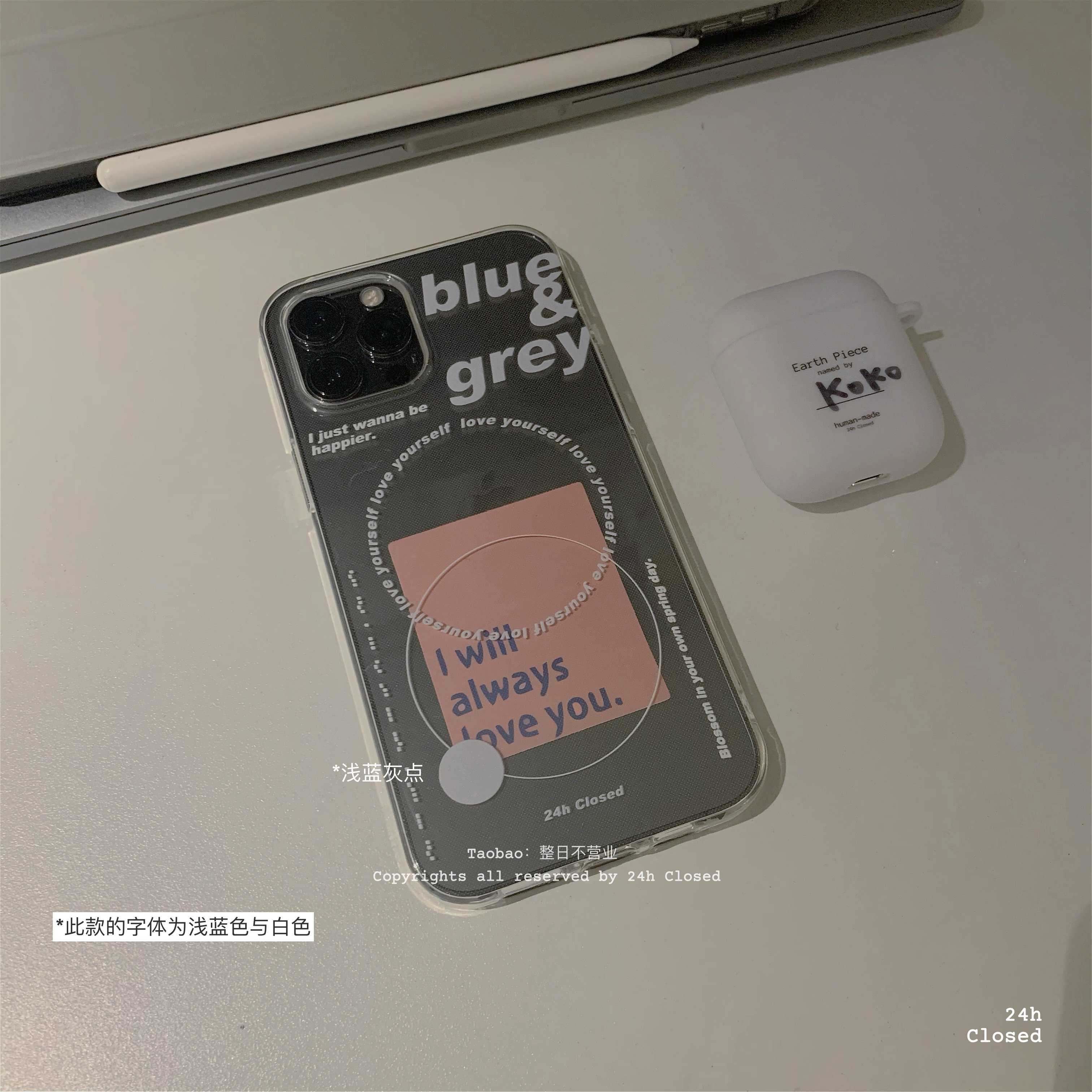 整日不营业原创「Blue&Grey」日韩ins风透明适用于苹果iPhone17promax生日手机壳全包16promax保护套简约软壳