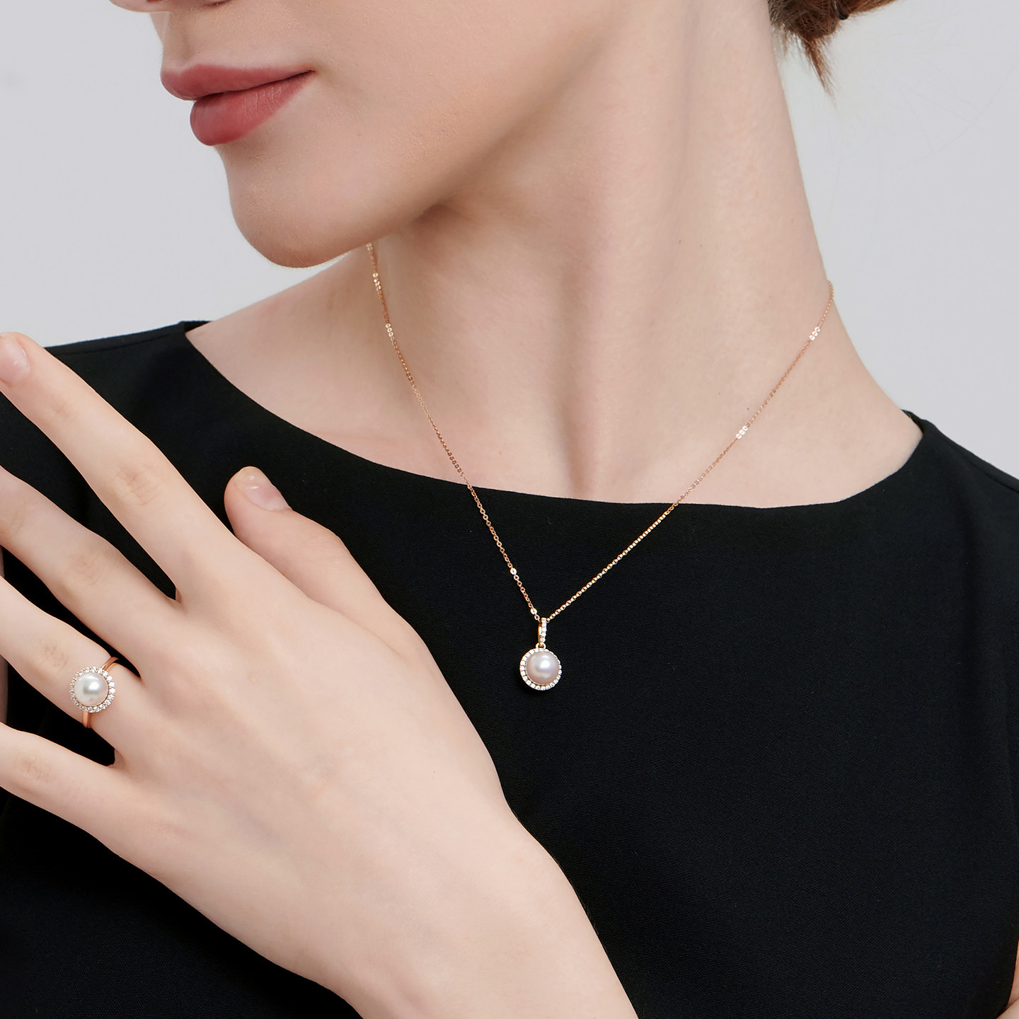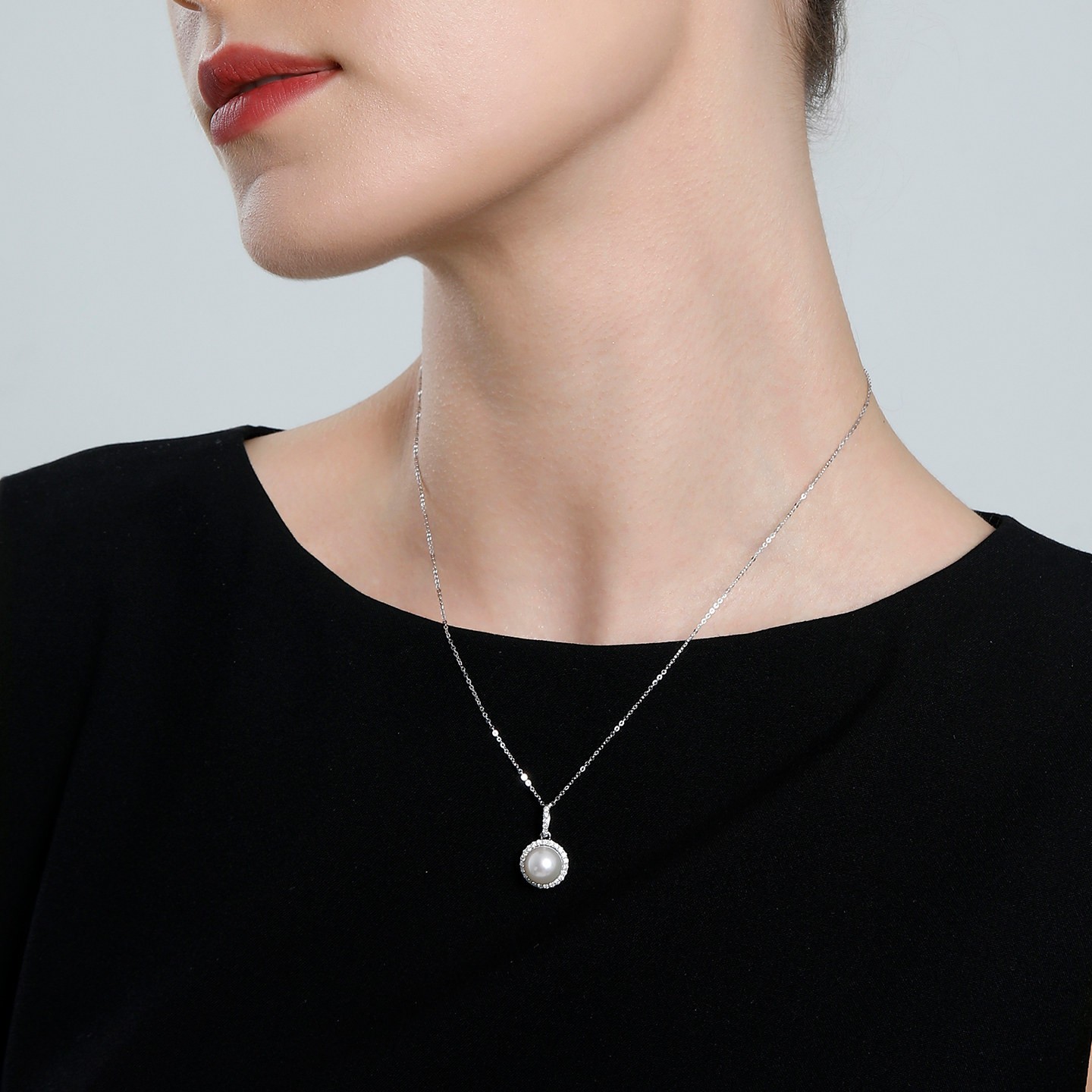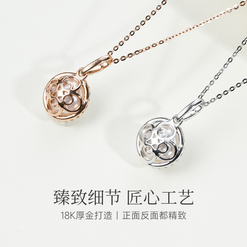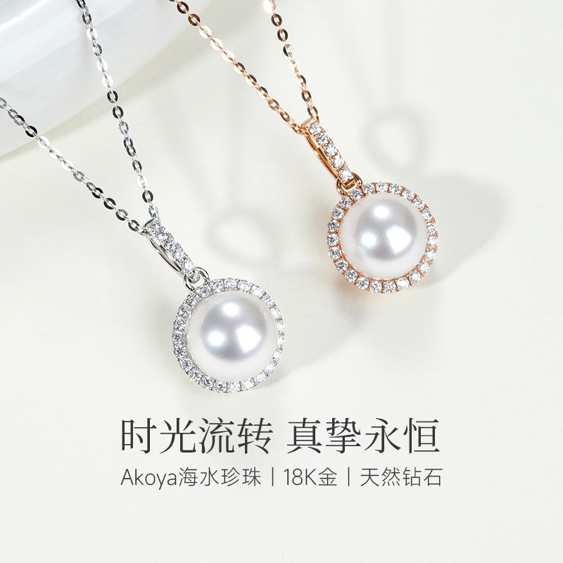 GiO珠宝 送礼 Akoya海水珍珠项链女钻石18K金吊坠单颗气质款
