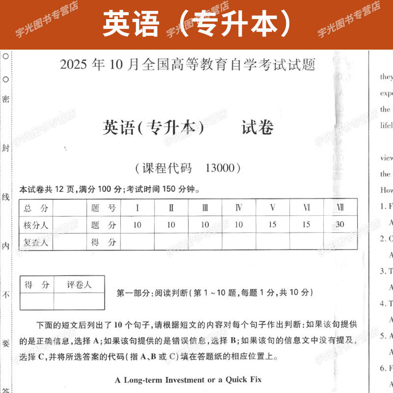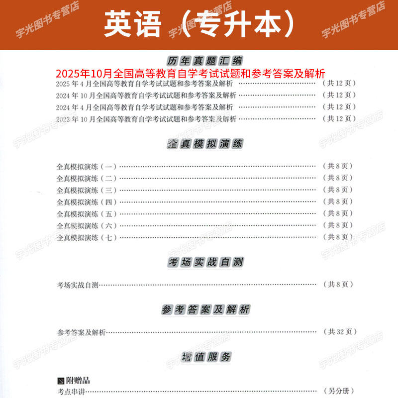 自考通试卷 复习资料题库成人成教成考 小册子宝典00015英语二13000英语专升本真题2026年自学考试大专升本科专科套本教材