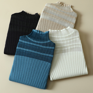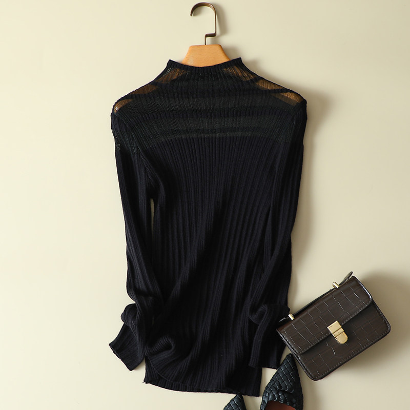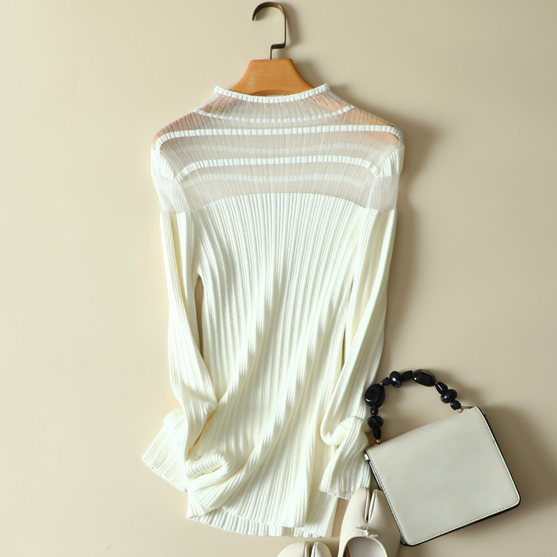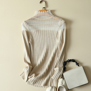 毛衣女 蕾丝拼接半高领女士内搭针织显瘦洋气打底衫 春装 2024年新款