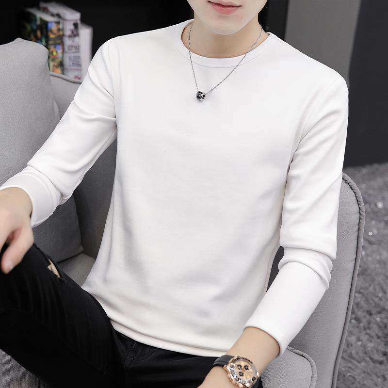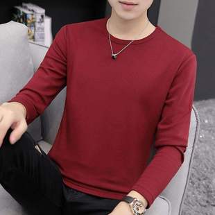 男士 内搭休闲百搭上衣打底衫 纯色弹力大码 T恤修身 圆领长袖 春秋季