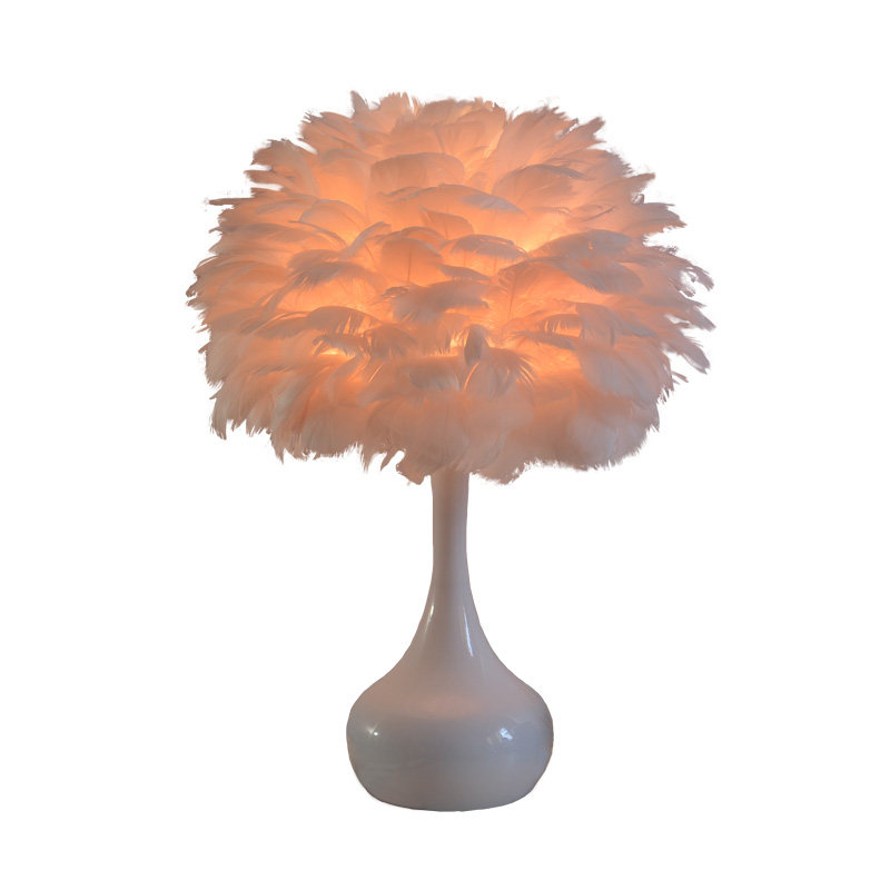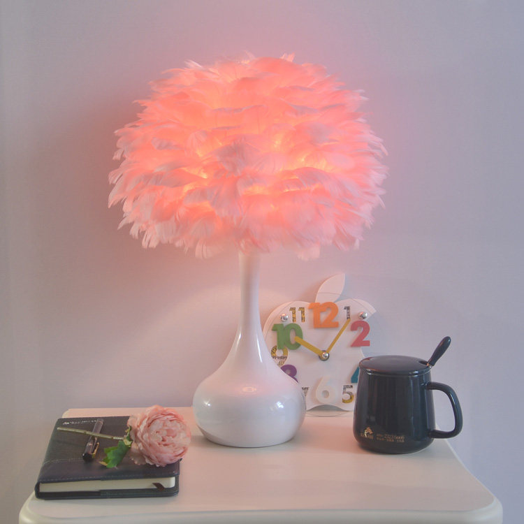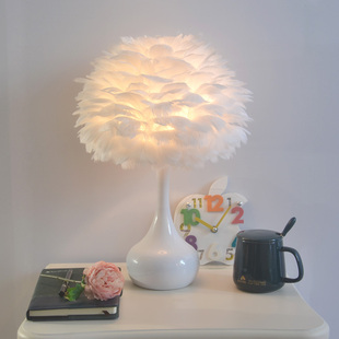 饰暖光白色卧室床头创意客厅小灯饰 网红羽毛台灯结婚庆装 欧式 时尚