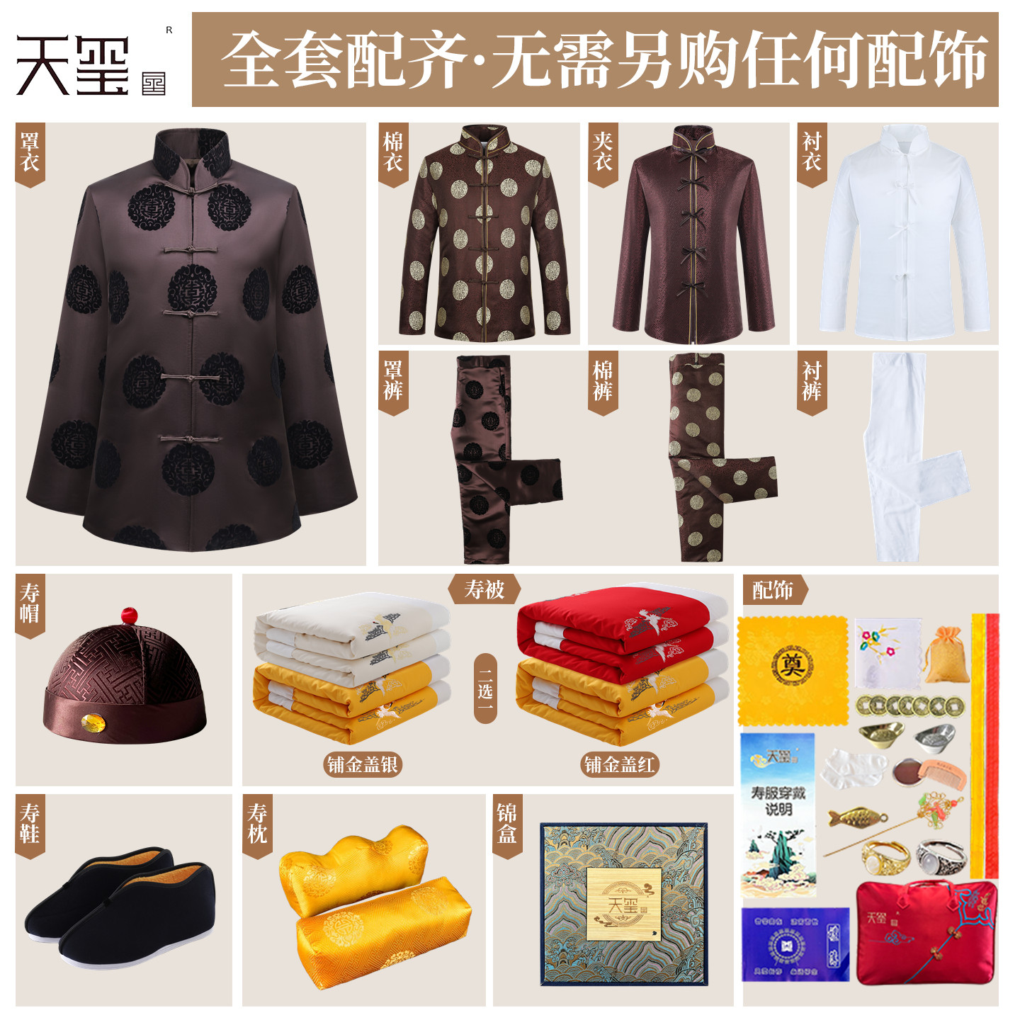寿衣男全套老人闰年全棉寿服织锦高档年轻人寿品殡葬送老衣 皎梦