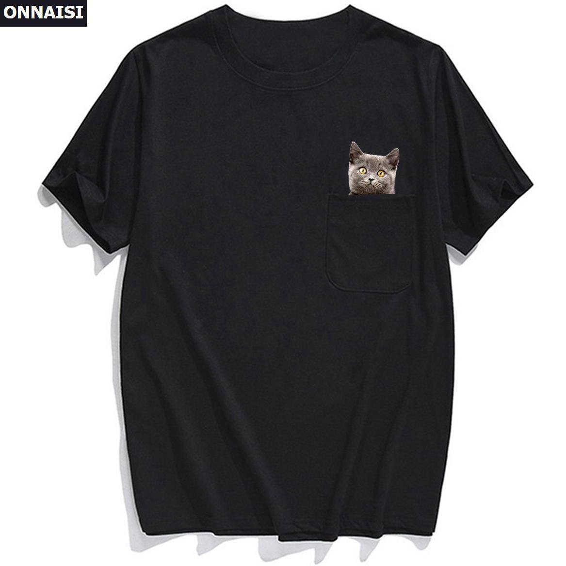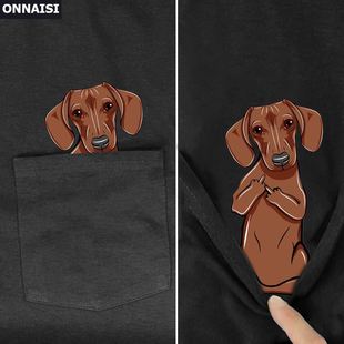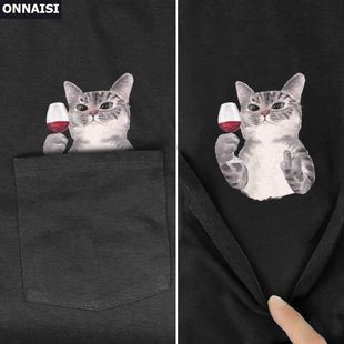 Summer Print Pocket Funny 猫 Shirt Despise Dog口袋印花T