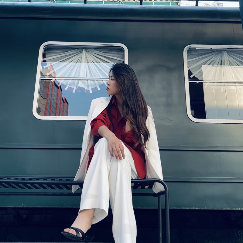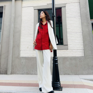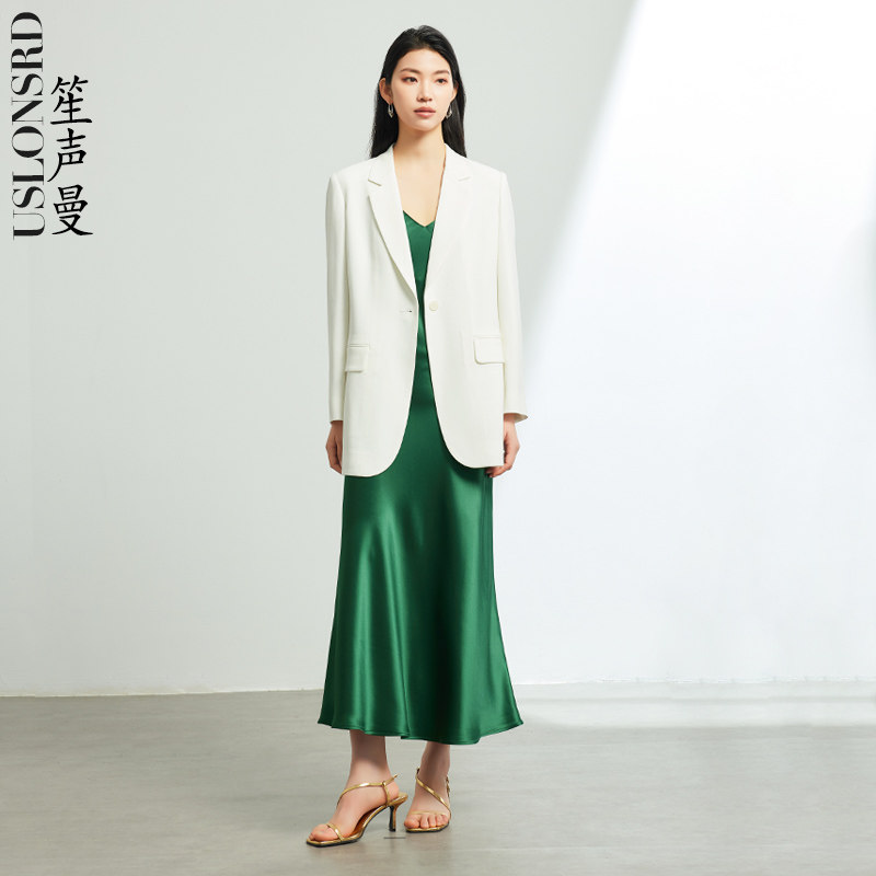大码 Uslonsrd白色西装 廓形春秋长袖 外套宽松大版 职业白领潮 中长款