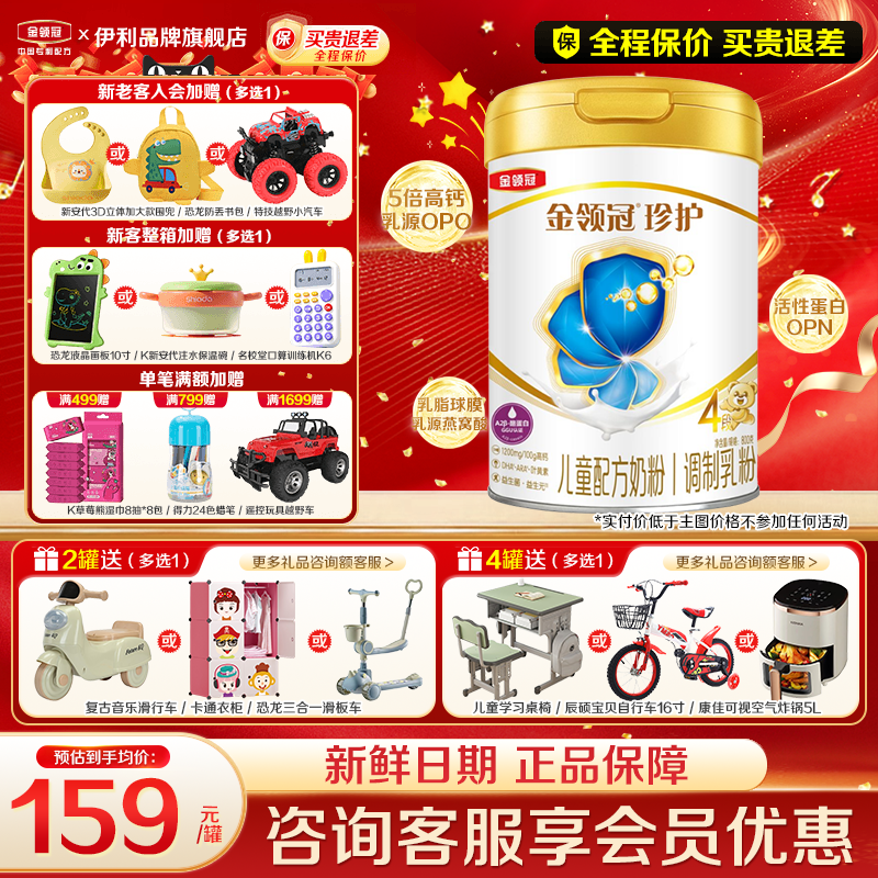 伊利金领冠珍护4段800g克学生儿童成长奶粉四段牛奶粉旗舰非900g