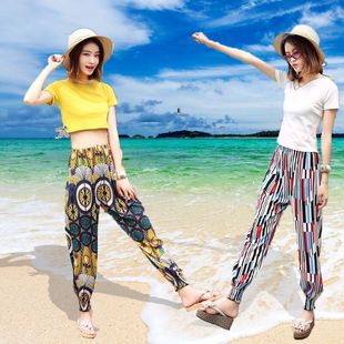 人造棉绸灯笼裤 薄款 绵绸长花裤 休闲哈伦裤 女防蚊裤 大人沙滩裤 夏季