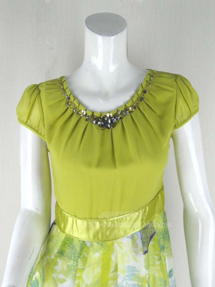 印花亮片亚克力镶钻假两件连衣裙12S276G BEI萱专柜正品 79元 清