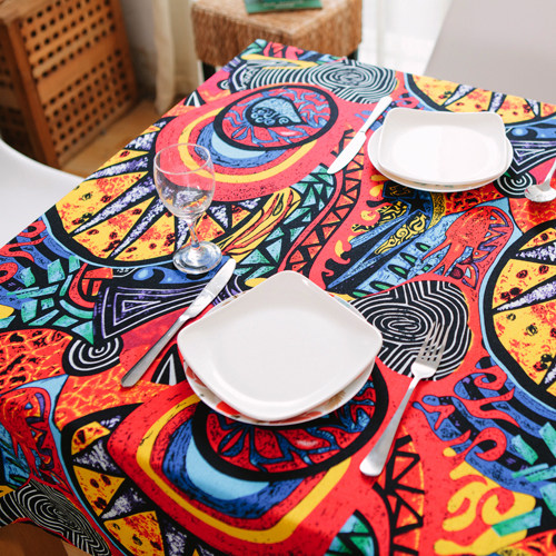云南丽江印花棉麻布料民族风复古风波西米亚面料饭店靠枕酒吧桌布