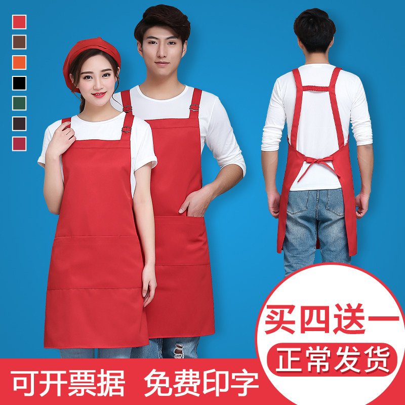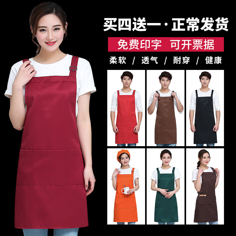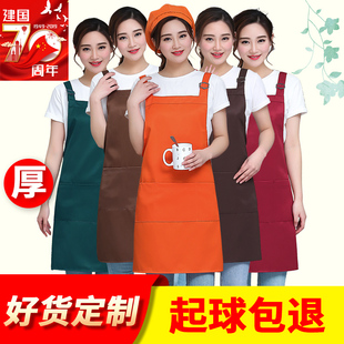 纯色加厚帆布防水围裙厨房防油奶茶店美甲店餐饮专用定制logo印字
