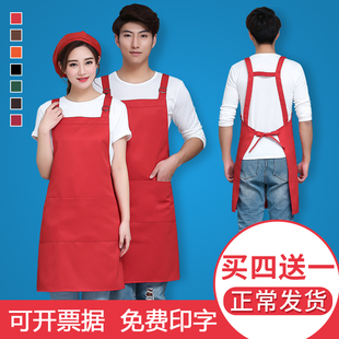 纯色围裙厨房餐饮专用可定制logo店名上班工作男女同款 时尚 韩版