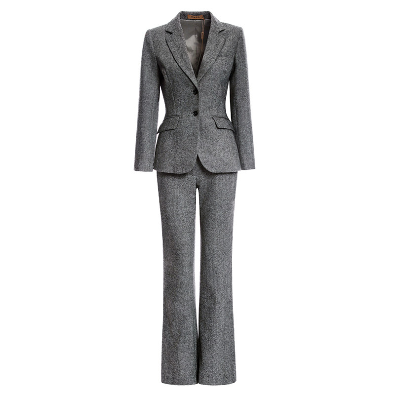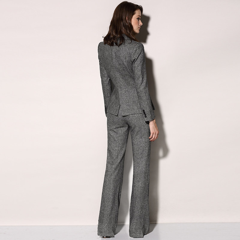 添香羊毛西装 时尚 裤 女修身 洋气质灰色ol两件套商务女 套装 颈袖