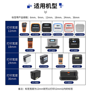 谊和YZE系列适用兄弟标签机色带标签打印机色带不干胶标签纸适用E100B 36mm覆膜标签带 白底黑字