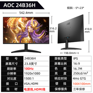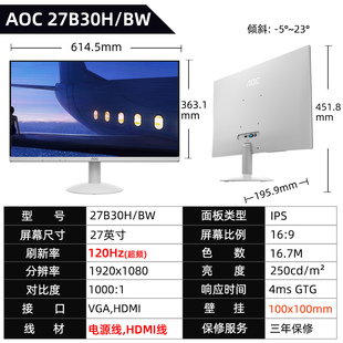 AOC显示器24B36H电脑24英寸外接屏幕游戏办公27B36H液晶IPS监控27