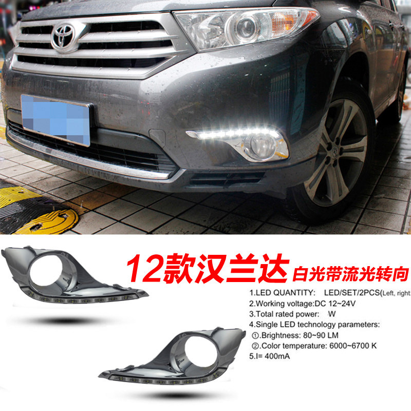 汉兰达日行灯12 天使眼透镜雾灯总成 14汉兰达LED日间行车灯改装