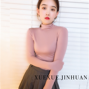 女长袖 2020秋冬新款 t恤超薄秋衣大码 修身 女 上衣莫代尔高领打底衫