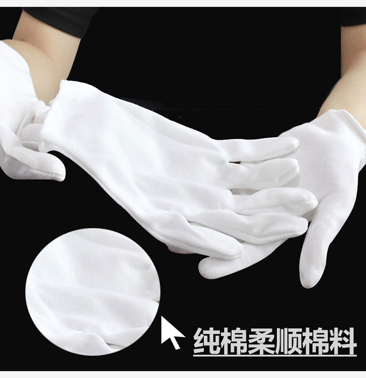 黑色手套礼仪纯棉文玩劳保盘珠开车薄款 工作 全棉加厚白手套薄款
