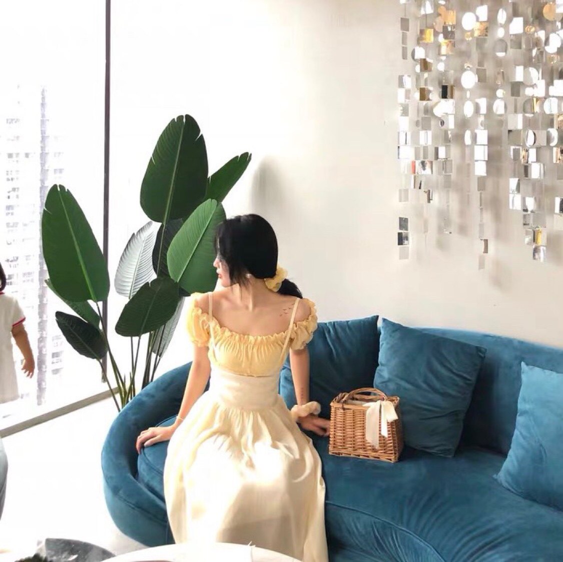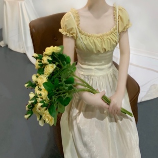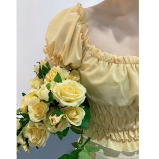 修身 上衣短款 显瘦超仙 温柔显白鹅黄复古方领短袖 晚时光秒杀