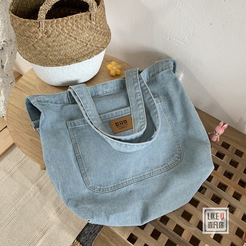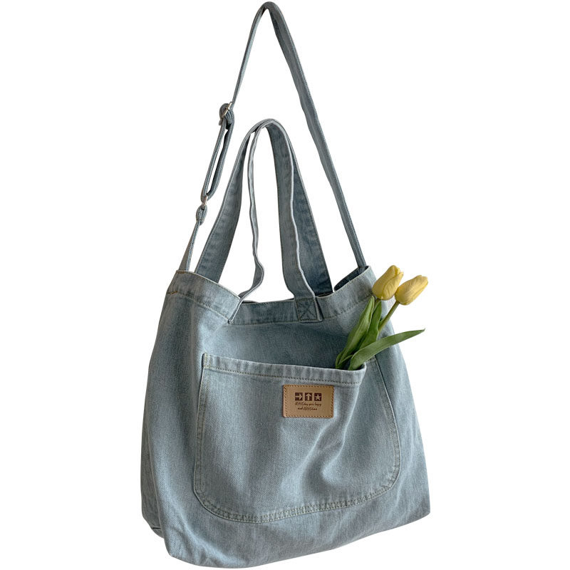 原创网红逛街牛仔包大容量学生包ins简约复古百搭帆布单肩斜跨包