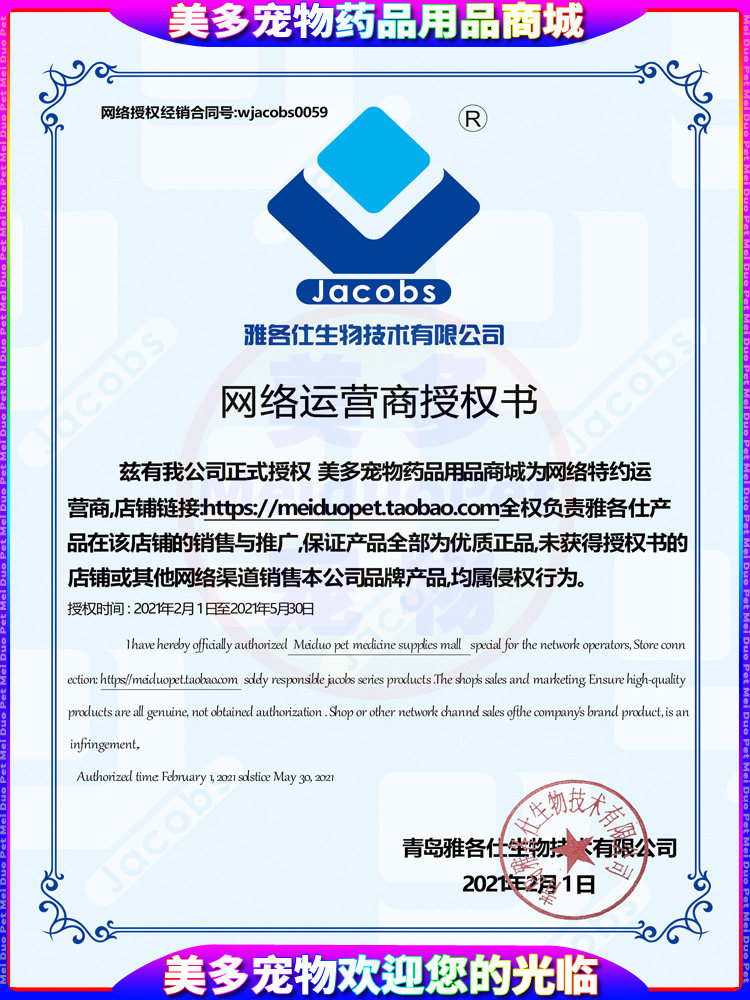 店铺掌柜: 美多宠物药品用品商城一诚信保障