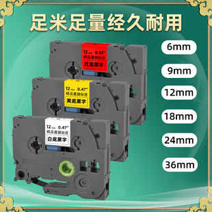 D400 18RZ碳带p900w贴纸E300 D600 241白底黑字TZe641黄色标签P900黑色字体PT 适用18mm兄弟牌标签机色带TZe