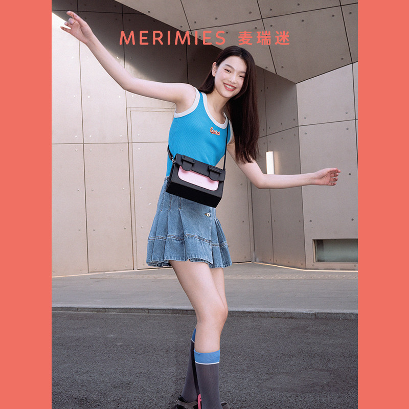 merimies麦瑞迷泰国剑桥包M号蓝黑拼色包包单肩斜挎包女包