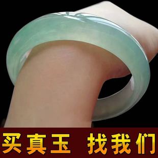 天然缅甸高冰种真玉手镯少女款 旺夫淡浅绿玉镯子送礼 翡翠色妈妈款