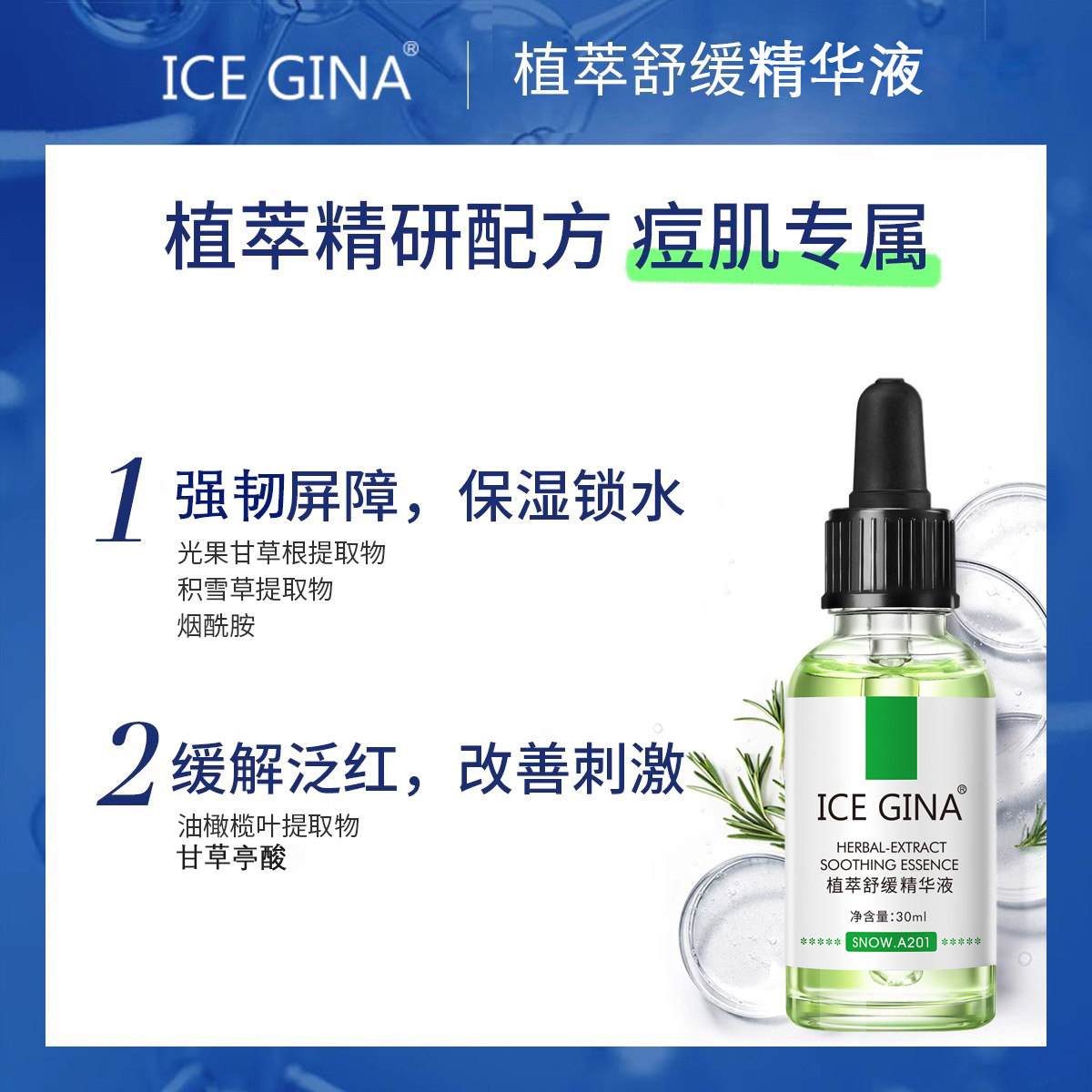 褪红提亮肤色改善刺激男女 精华淡退痘印保湿 ICE GINA植萃舒缓保湿