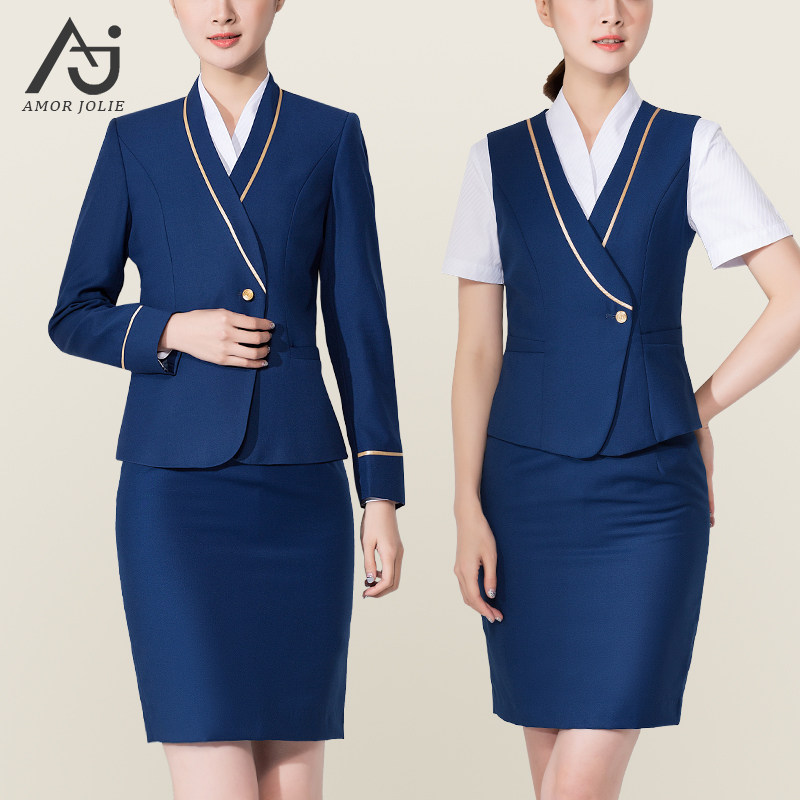 南航空姐制服女职业套装 物业房产销售工作服午夜蓝 套裙高铁工装