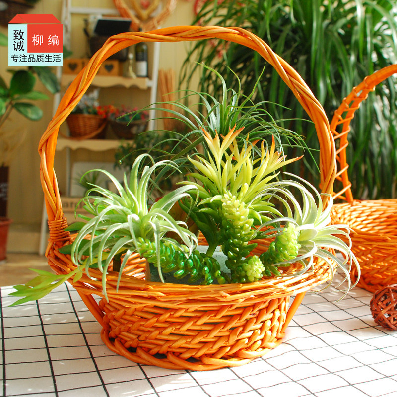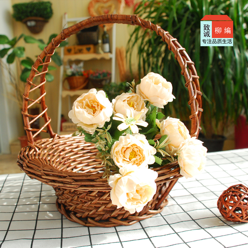 柳藤编花篮舞蹈道具跳舞篮鲜花篮子婚庆小花篮手提客厅插花编织篮