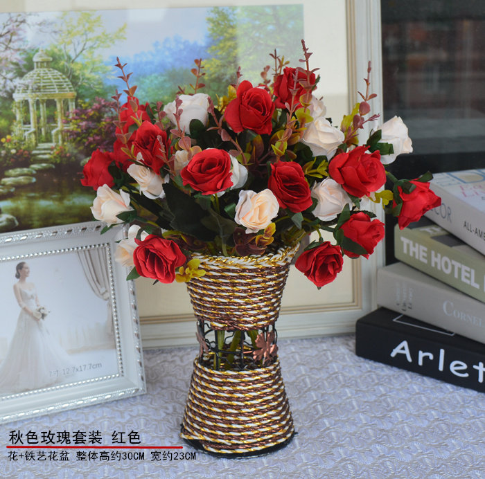 仿真植物盆景仿真花卉假花盆栽绿植餐桌茶几干花玫瑰花客厅摆设
