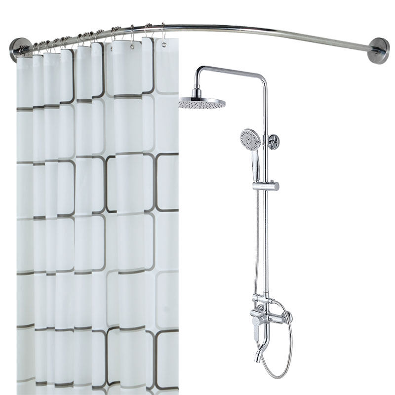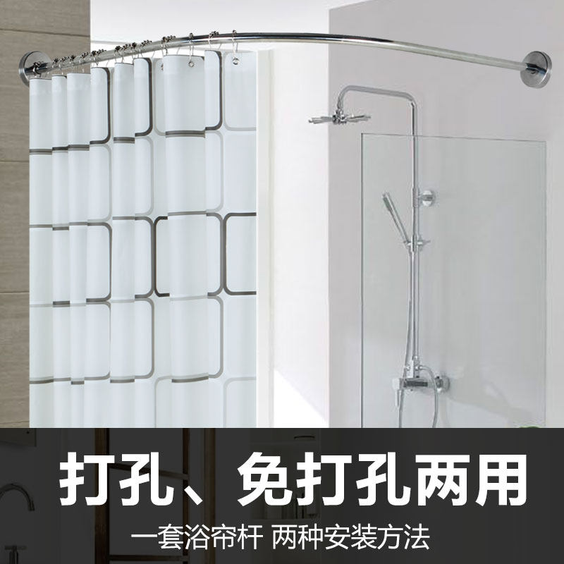 卫生间加厚浴帘防水防霉浴帘杆套装 免打孔浴室隔断门帘窗帘挂帘子