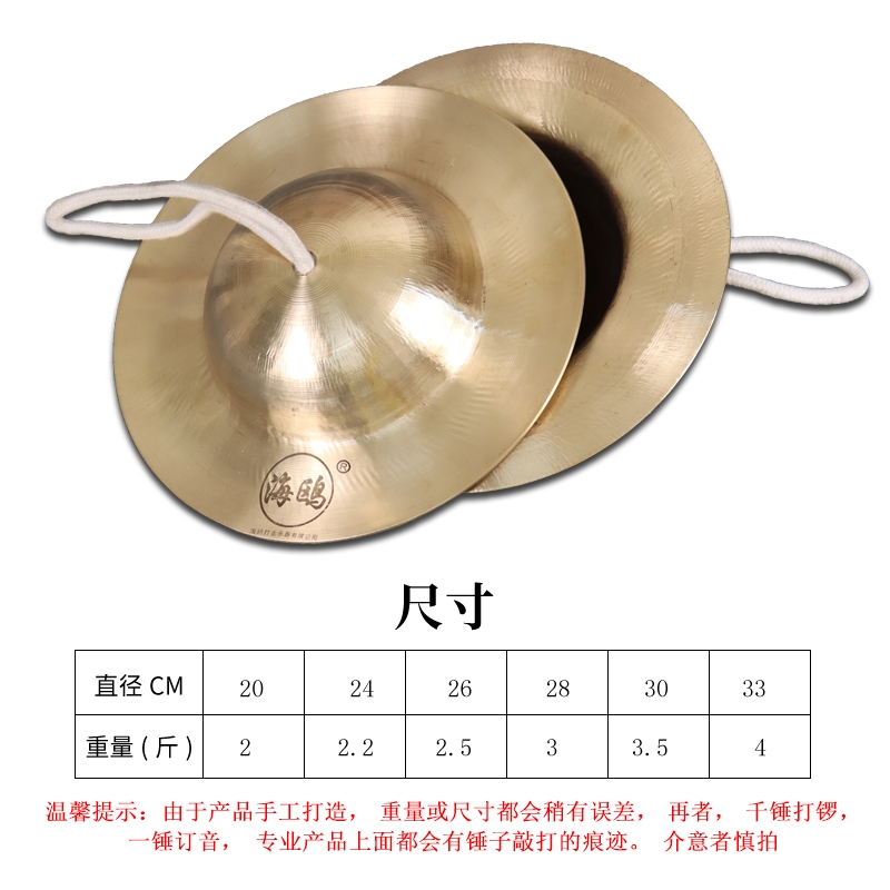 海鸥响铜大帽镲26公分28CM大镲川钹锣鼓大头镲大帽镲响铜草帽镲