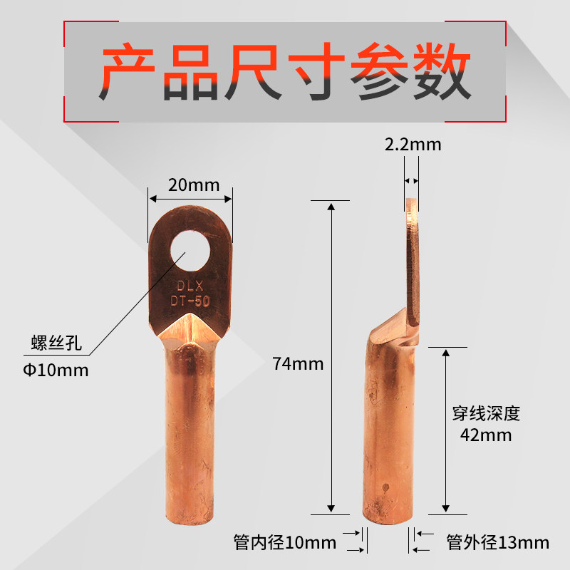 线鼻子线耳 铜接线端子 德力西DT 电缆 紫铜 闭口铜鼻子