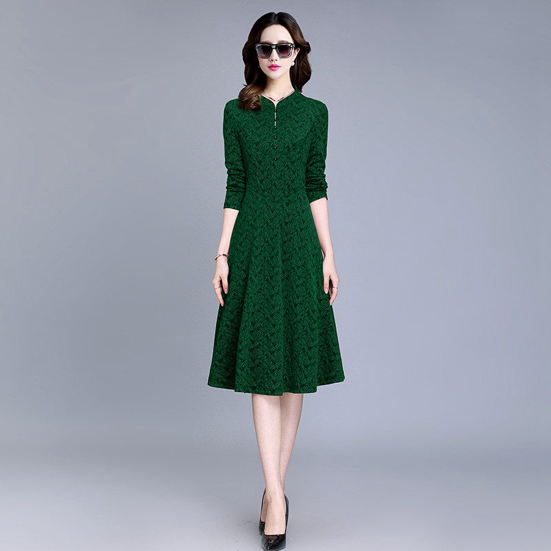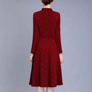 气质妈妈装 埃伦秋季 中长款 优雅女装 宴会婚礼A字裙 连衣裙2021新款