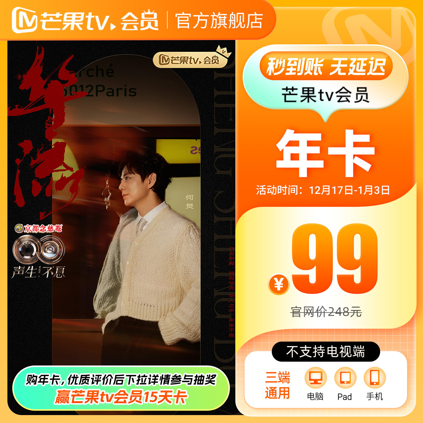 芒果TV会员12个月芒果VIP年卡视频1年不支持电视 年卡限时99元
