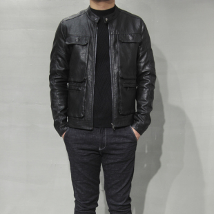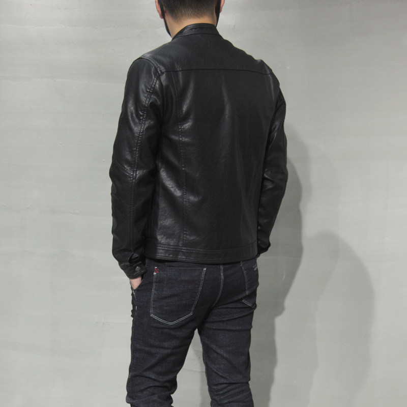 皮夹克青年修身 男士 机车皮衣男帅气休闲加绒皮衣外套立领 新款 春季